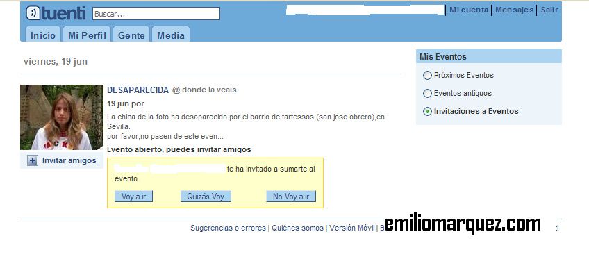 La desaparición de una joven sevillana ha provocado una intensa movilización, no sólo en la calle a través de los periódicos o carteles, sino dentro de las redes sociales y por correo electrónico. Estas redes sociales usadas mayoritariamente por los jóvenes, son Facebook y Tuenti, un valioso canal por el que interactuar, sea para ofrecer apoyo o ayudar con cualquier pista que pueda llevar hasta el paradero de la joven.